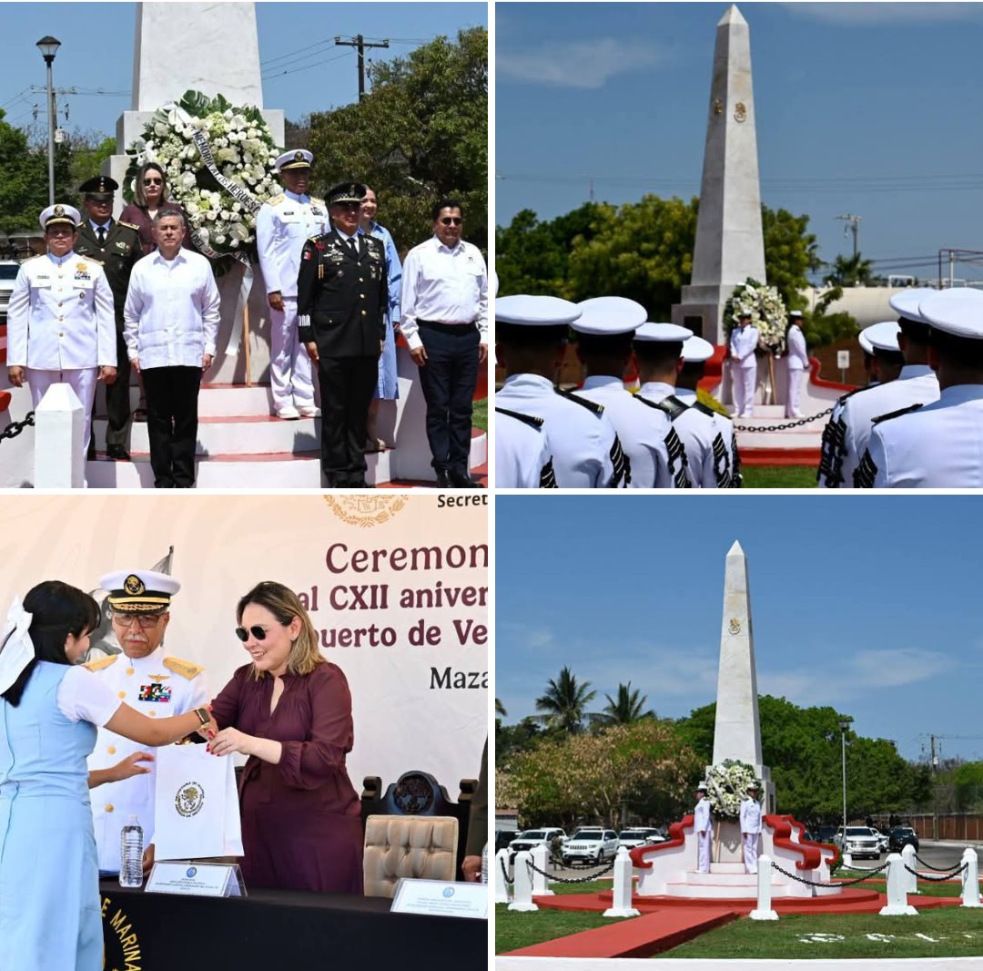 MAZATLÁN, Sinaloa a 21 de abril de 2026. En una solemne ceremonia realizada en el Monumento a los Niños Héroes, el Almirante Juan José Bernal Méndez, Comandante de la Cuarta Región Naval, encabezó el acto conmemorativo al CXII Aniversario de la Gesta Heroica del Puerto de Veracruz.