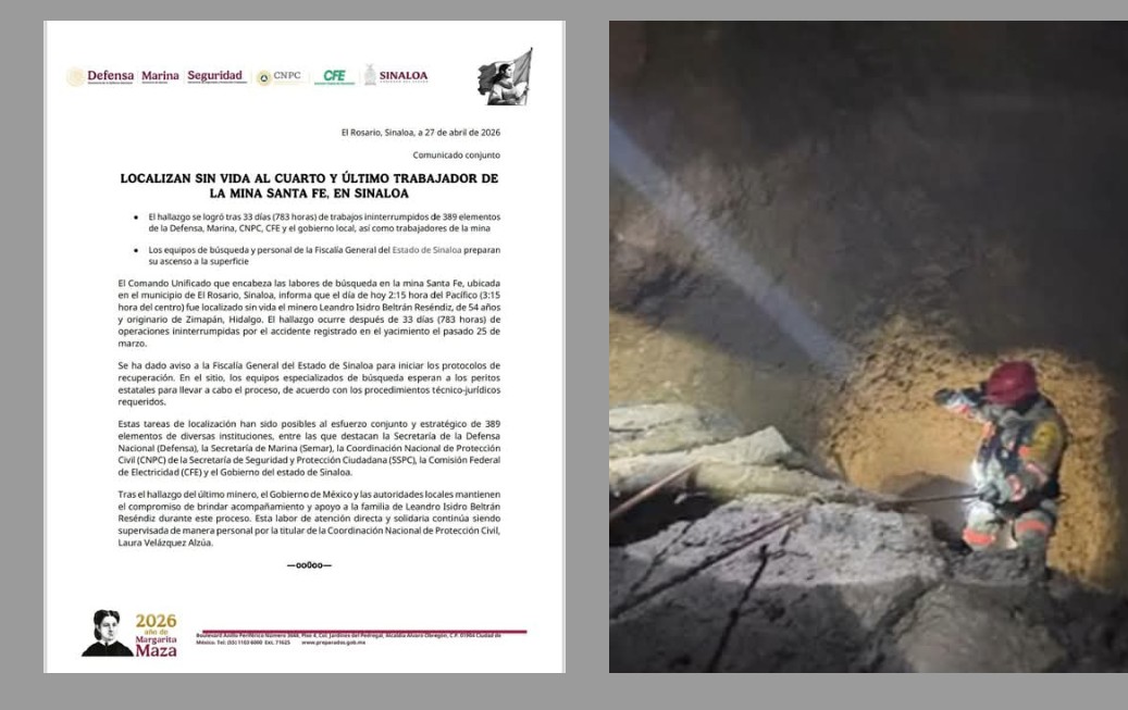 LOCALIZADO SIN VIDA, EL CUARTO Y ÚLTIMO MINERO